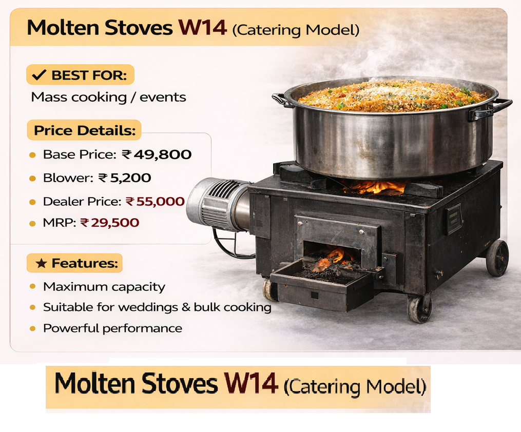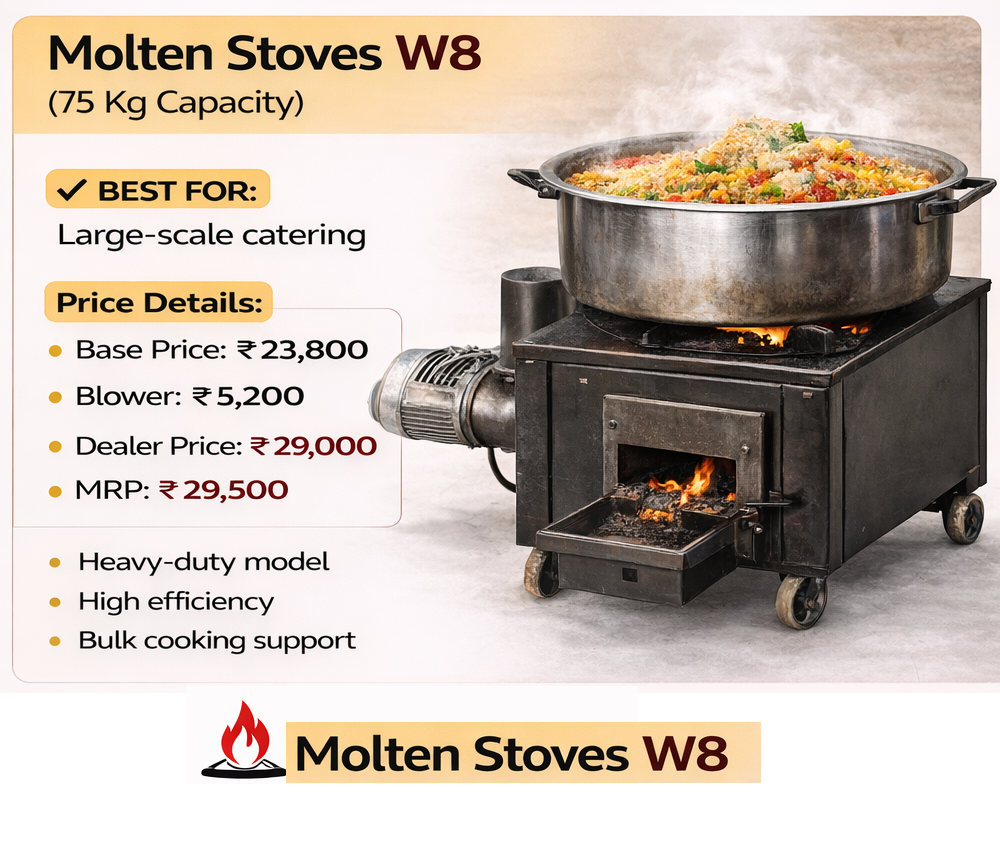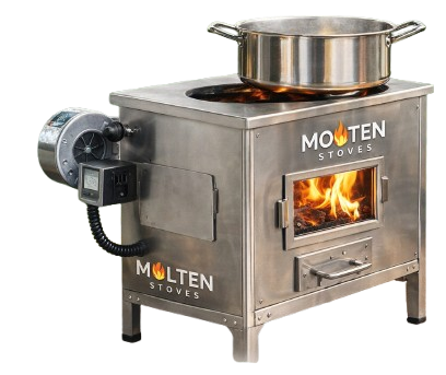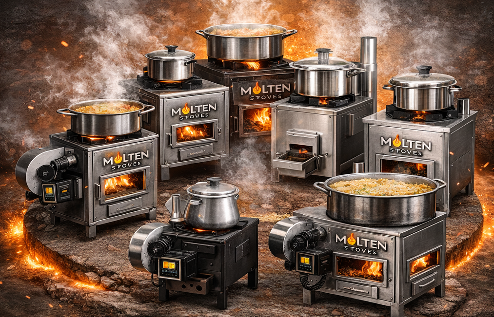 High-efficiency wood gasifier stoves designed for homes and commercial use. Molten stoves deliver powerful heat, maximize fuel efficiency, and Emits zero smoke—offering a cost-effective, eco-friendly, and reliable cooking solution.